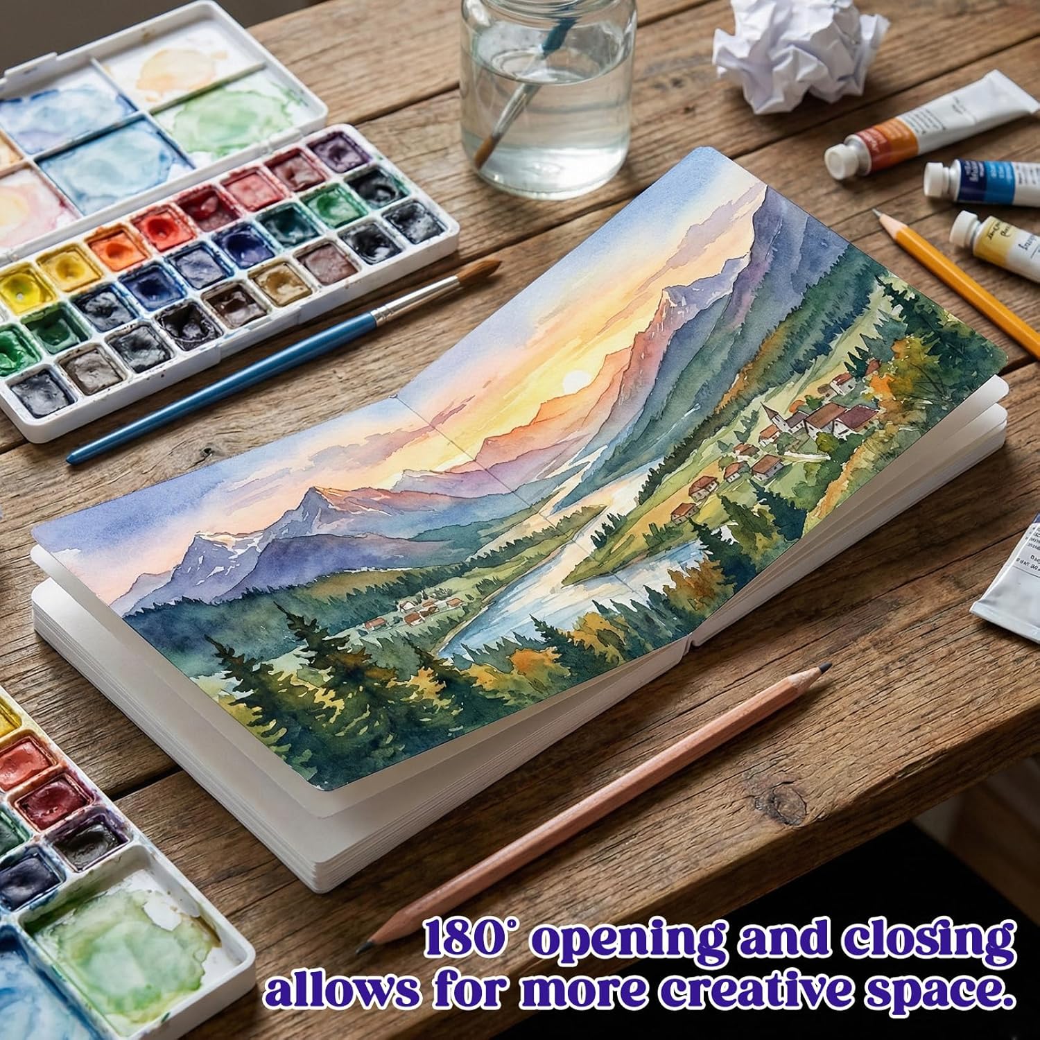 • Watercolor Notebook for Painting: Experience the watercolor notebook for painting with our flat sketchbook. The seamless page transitions allow for effortless creativity, making it nice for both beginners and seasoned artists.