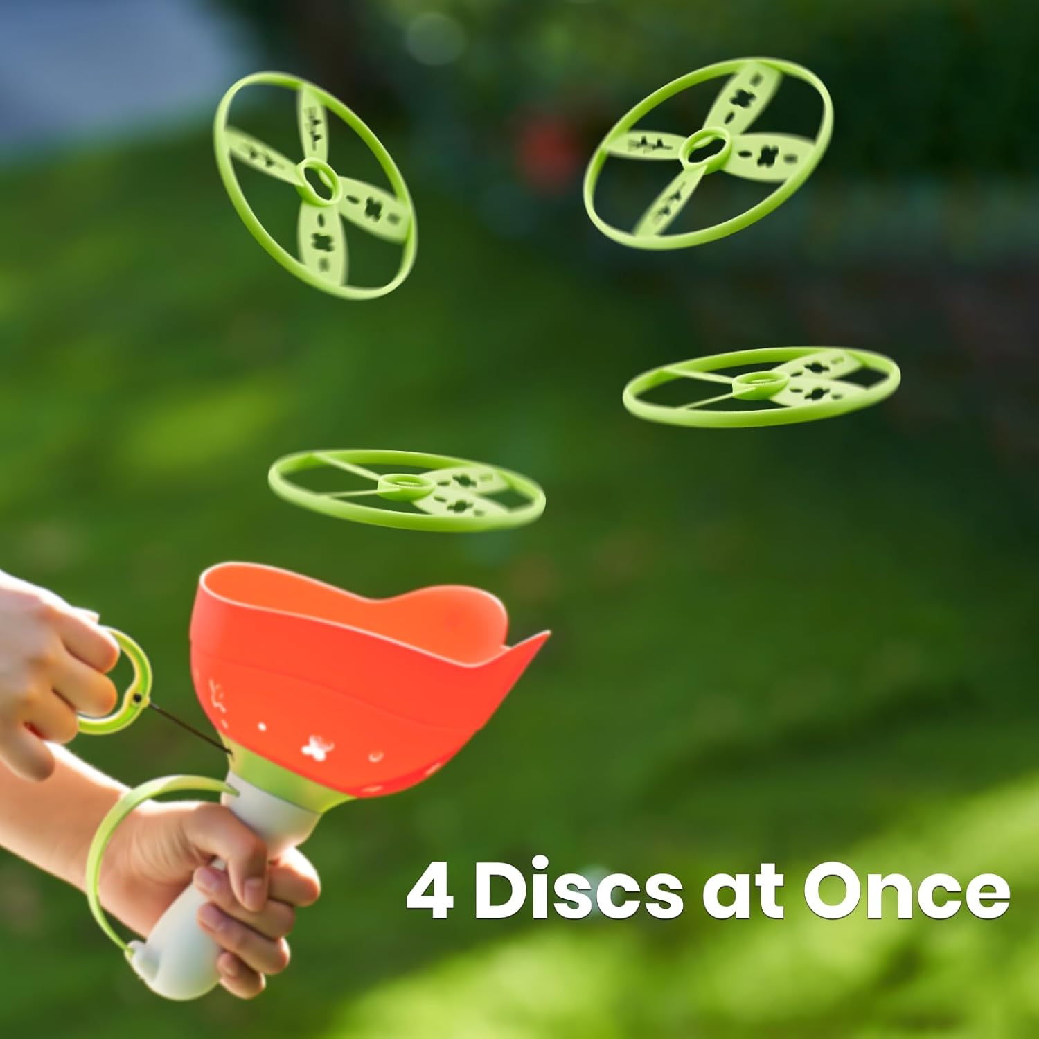 Flying Disc Launcher Toy (2 Packs), Manual Capture Catching Disk Game, Outdoor Toys for Kids Ages 4-8, Outside Yard and Lawn Family Games for Toddlers 3-5, Birthday Gifts for Girls and Boys
