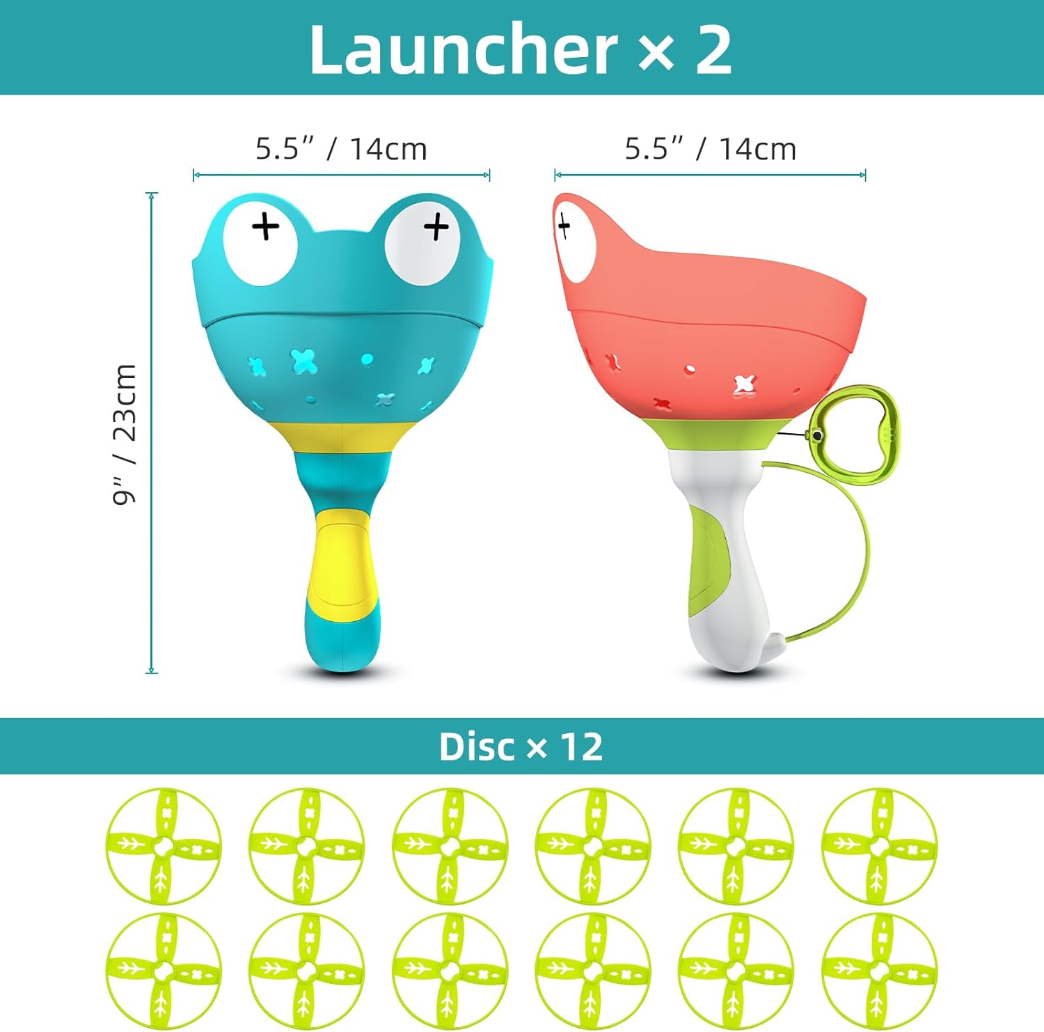 • 【Simple and Varied Gameplay】Our flying disc launcher toy includes 2 frog launchers and 12 discs. As a manual capture catching disk game, it features gameplay that includes both mutual launching and catching modes and self-launching and catching modes. Easy to use, it’s suitable for children aged 4 and up. It’s the perfect kid toy for outdoor fun and family games.